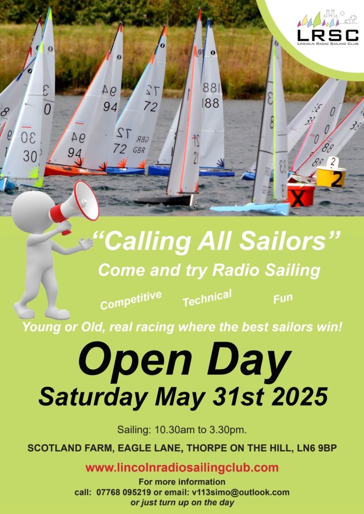 Saturday 31st May , Its our Open day, an all day bonanza with club members bringing a variety of boats for any body who is unsure what it’s all about , so they can have a go, This will be publicised on Social media around the county an beyond, we will be setting up a race area as well so more than a few races will be held, and we know what happens once you have that transmitter in your hands.