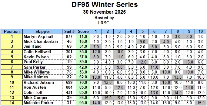 Your OOD arrived down at Scotland Farm to find the sun shining and the temperature a balmy minus something with the wind direction indicating we would be sailing along the south bank, a course was set to include two beats with a dog leg in it. With 14 eager competitors including three new members (welcome all) racing began on the dot at 10am after a quick safety brief as the launch/landing platforms were somewhat slippy, many thanks to Mick C for putting down some salt. The races were quite short due to the wind being on the light side in the morning with a beat a run and a beat to the finish, however at fifteen minutes long we managed to get in five races before a tea break was called. Alas, Mick Cooper was forced to miss four of these due to a failed rudder servo, however having a spare was able to rejoin us after the break. In the morning all five races were won by either Martin A or Mick C showing the rest of us how its done. During the break the wind had come up slightly, so the decision was made to extend the length of the course with the addition of two extra marks (many thanks Martin A for his fine work in the rescue boat). We then managed another five races, with Martin A and Mick C again taking the bulk of the wins, only interrupted by Kevin E who took race number eight (well done Kevin). What was good to see was that the new members all showed great promise with improving results throughout the day, but it was Martin A and Mick C who showed the rest of us how it is done and well done to them both. Finally, many thanks from me, for all of the help given at the end of the day packing all of the equipment away.