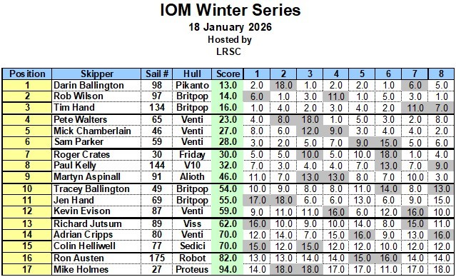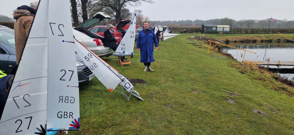A bit of a damp morning, but it certainly did not dampen the spirit of the I.O.M skippers .. 17 skipper’s steady on, Rob was RO, and give him lots of credit he did a great job, as always plenty of help was on hand from the usual faithful’s, It really was tipping it down when we all turned up and hung around for an hour and then dried up, not cold and a gentle breeze from ,,, I guess the North East that gave us a nice beat and run on the South bank, nine designs on show today, and Darin B had his Brit Pop back , not the Pikanto as suggested in the results ,, 1st race kicked of right on time after the briefing, and it was Tim H 134 followed home by Darin B, and then Sam P 59 in his Venti. The breeze was light and just a little shifty, and you needed your wit’s about you, for the whole length of the course which was of course two laps.