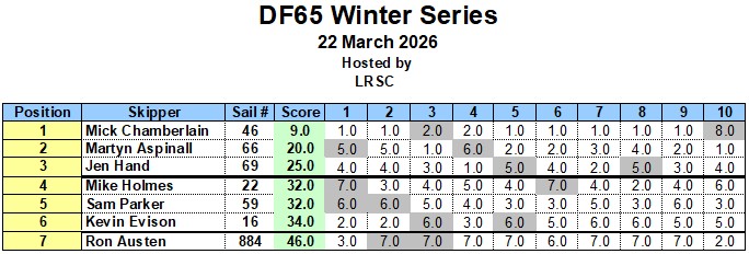 A light Southerly allowed a course up and down the clubhouse bank and racing started promptly at 1000 with a 1 lap Race to assess conditions.