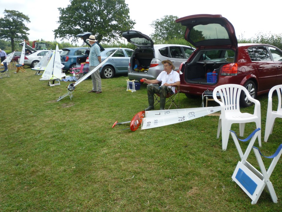 A decent top suit breeze stayed with us all the morning and the rain held off , a good windward leeward course was set with Starboard rounding and a gate at the leeward end, We had a guest sailing an R.C Yacht for the first time , but I suspect not the last Les is an old Sailing friend of Mick C and was up for the weekend with his wife Annie. The racing got of to a good start and Martin C was using a badly rigged AB4 for the first time but very soon got the hang of it. The results are posted below , but the most notable improvement came from Mick Hunt GBR 14 with a very good 3rd place , there were battles up and down the fleet and Jim Dinmore was also showing some good form with his new boat, and when he gets it settled and trimmed will soon see himself climbing the ladder and putting some established club members to shame , results and pics below , The Dragon force series held on the same day will be posted a little later .