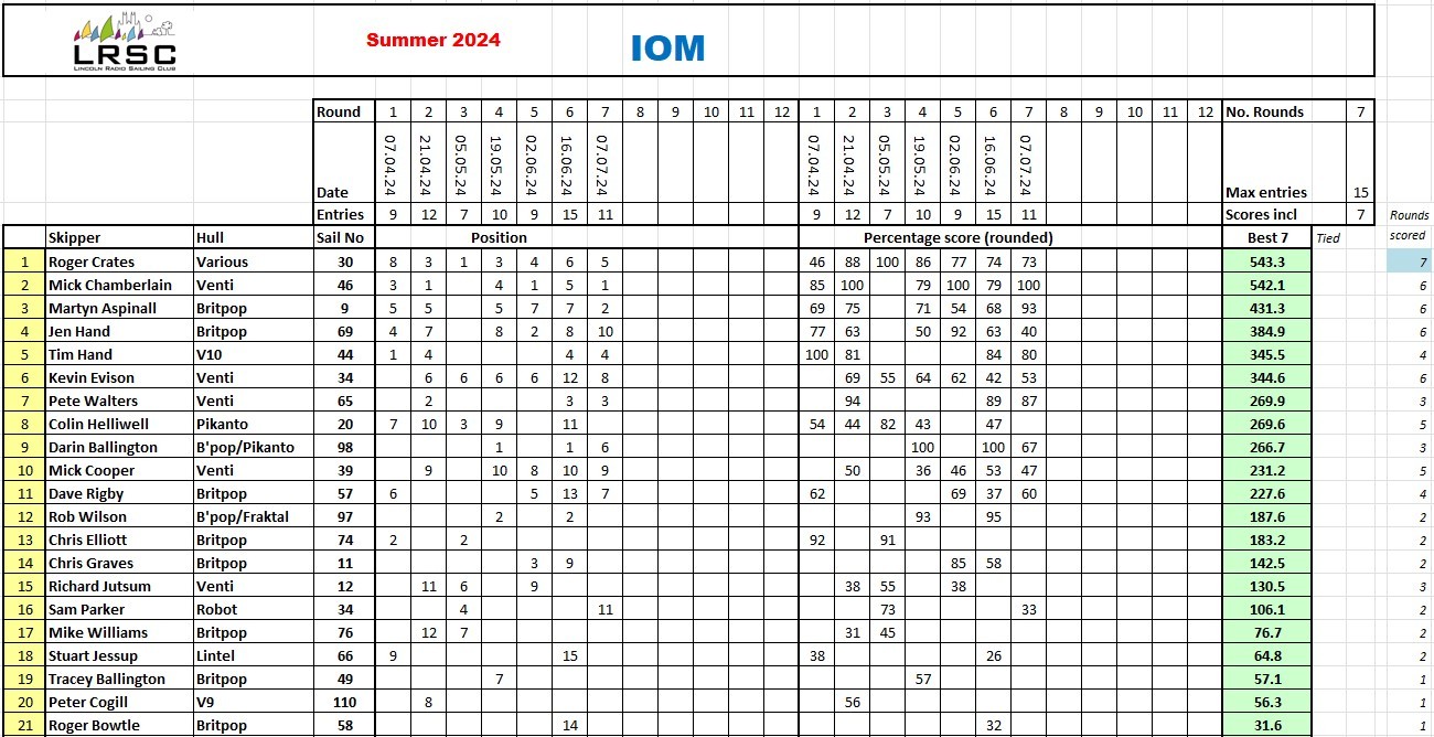 Mick C 39 not one of his better days but we all know he wont give up, Tracy won the ladies game beating Jen, so the bragging rights are down Ashby way for a couple of weeks , Race five saw a small incident on the finish line which took Mick C 46 from 2nd to 7th as he had to do a turn and refinish , kindly explained by Darin after the race , Mick C 46 just seemed to have the edge on Darin this week taking two more wins from the 9 races. As I said before, the racing was superb , ok one or two hotshots missing, but as they say when the cats away £$%^^$$ and so well done to Micky boy for the win but more important for the manor in with it was all sailed ( mostly) many thanks to all who helped get stuff put away , and a bit vote of thanks to Roger Bowtle who not only sorted or the electric outboard out and repaired it , he also sorted out a problem or two with my car , and also did the finishing line and the start line. Next up in a couple of weeks is round 10 , cant wait .