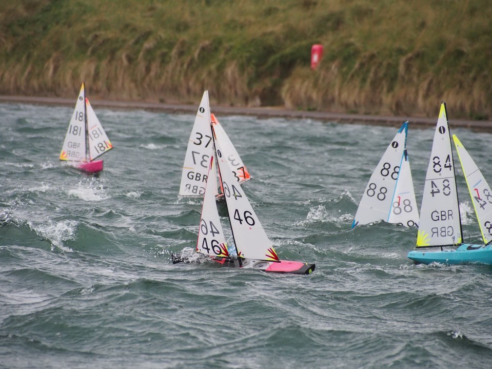 After an extremely windy day Saturday it was somewhat calmer for the start of the racing on Sunday morning.Unfortunately, Micky Ch had been on holiday all week, and we did not have our usual “Thursday NEWS”, resulting in two skippers turning up with the wrong boats! Oh how we miss him. A long course was laid along the South bank, and two laps were completed on each race all morning. Starting on A+ rig, by coffee break we were changing down to A and almost immediately to B. Bill McPhee changed down to C and said what a pleasure it was to race whilst watching some of us with rudders pointing to the skies. No surprise, Pete came out on top for the morning with 9 .points closely followed by Keith on…11………….For those of you who missed it – it wasn’t cold and we didn’t get wet. Our new jetty is now well clear of the water, but it was a welly job if you wanted to retrieve your boat on the south bank .