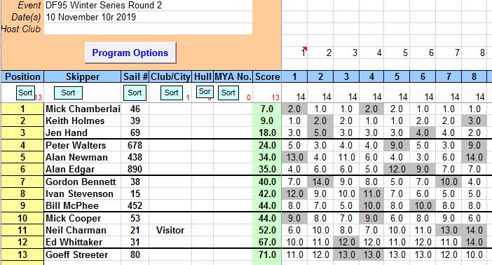 Suport the club and come sailing for a couple of hours on a Sunday morning. results below
