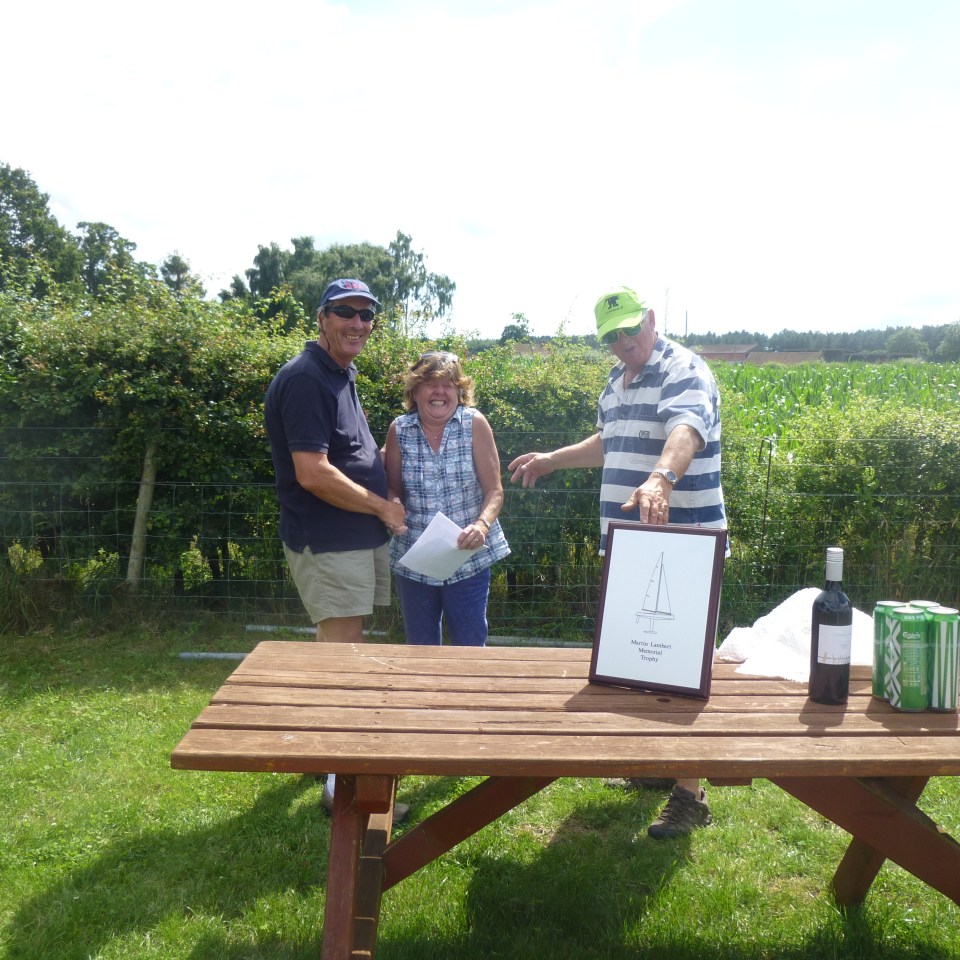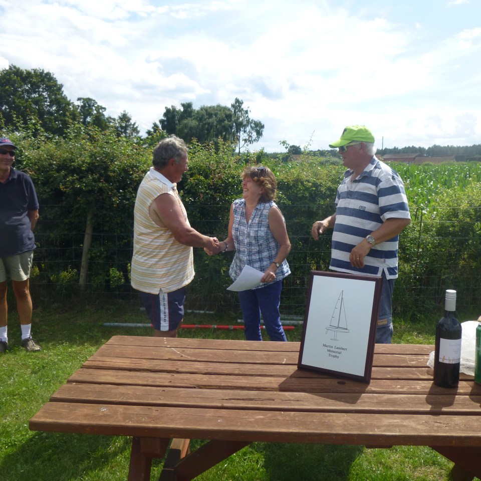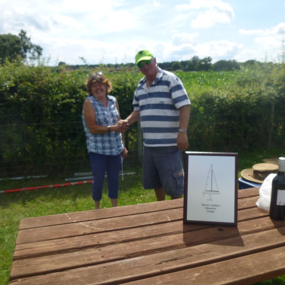 A first class summers day greeted the skippers but with only a knot or two of wind the first few races were going to be tricky, Mick C had a secret weapon ( sorry its a secret) for the light air with his V9 and bagged a bullitt in the first two races, closely followed by last years winner also with a V9 David Alston. By race 4 the breeze had become a nice south westerly 5 to 8 knots and racing was conducted on the East bank, one or two bits of the floaty green stuff, affected most skippers at some stage and yes it is frustrating but in reality it did not affect the racing that was held in high humour throughout. By 11am the sun was beating down and 25C was recorded, the breeze increased as the day wore on, and some fantastic close racing ensued. Some of the skippers brought their wives who very generously helped man the finish line and input the scores into the computer, they aslo had plenty of time for a chat and thoroughly enjoyed their day. Grainne Lambert came along to present the prizes on probably the best summers day this year. Many thanks to all the helpers and the good behaviour on the bank. It was nice to see a wide selection of I.O.M designs 7 out of 9 boats. Also nice to see three or four Visitors and potential new members having a look at what we do, we hope they return and come and have a go.