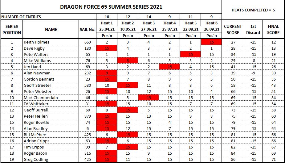 Well , we have a winner , after 6 heats and I have to say it is my favorite class. Keith Holmes 669 had a steady run of results to win by one point from Dave Rigby 180, so very well done, out of interest Pete Walters won the first 4 heats and unfortunatly was absent from the last two. As we go down the leader board we will see there have been some ties, but more importantly we were showing 19 skippers took part over the series.