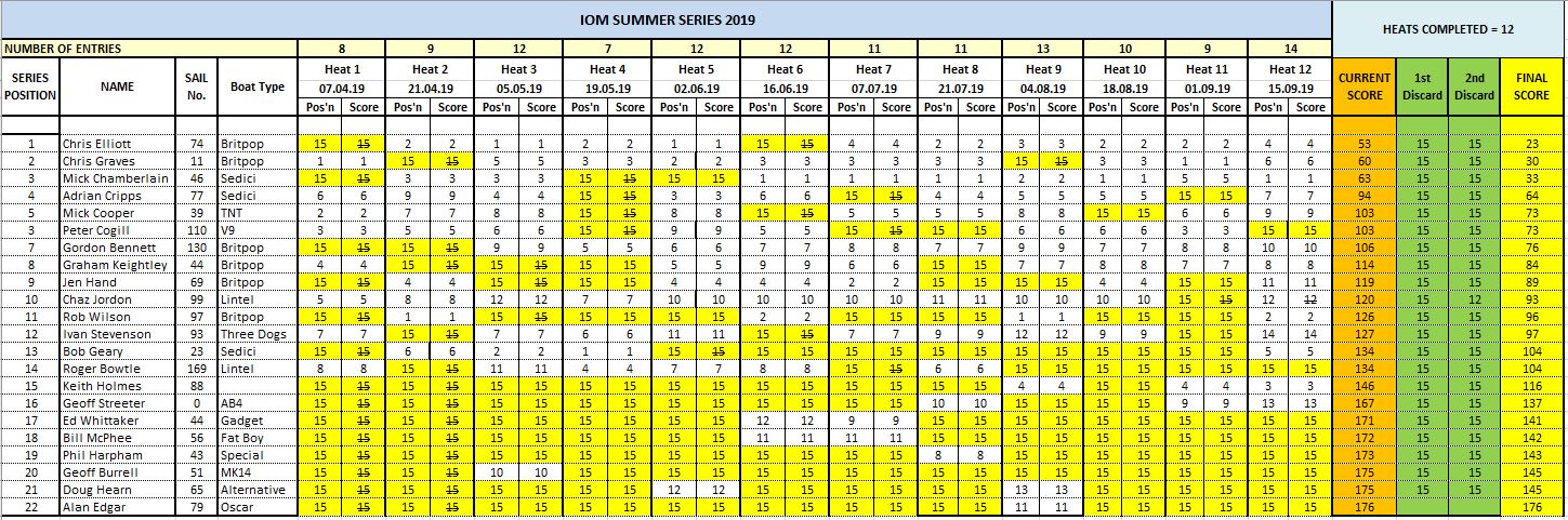 Final Results I.O.M summer series 2019