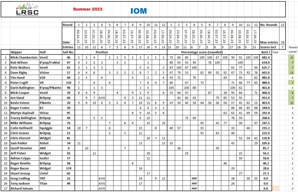 The Final race of the series has now been run and dusted, and we have a winner , winning five rounds out of 12, Rob Wilson got 2nd spot with Pete Walters in third. the series over the summer has had around 26/27 skippers at one stage or another, and has proved to be pretty competitive. The Winter series will start early in October, and I am sure the success of the series will continue