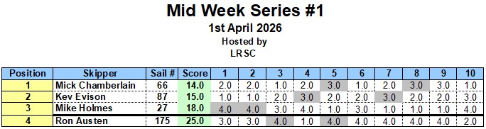 The next Mid Week Series meet is on Wednesday 15th April and we hope to attract some more club members with their IOMs.