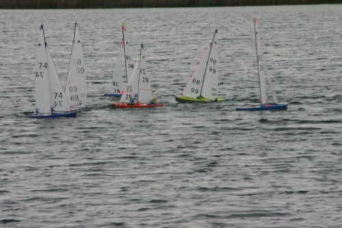 Lovely start to the day 13 skippers , not to cold, the odd drop of rain, not much breeze 3/4 knots max. The weather marks were a bit of an eye sight test for some, with most failing at some stage in the morning. Nice to report no salad , Rob and Bill got things underway prompt, and Chris E was soon into his light weather trim to take the first race, closely followed by Rob W and this was to be the battle royal for most of the morning with the two B/P’s sailing really well. Mick C with the Sedici never really got a look in, and I have to say it was pretty consistant sailing for most of the skippers.