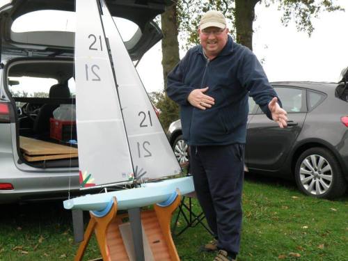 A fantastic days sailing at Scotland Farm 12 skippers turned out for this event and I believe all went home happy, Sunshine and a good breeze from the South West enabled sailing to be held on the East bank, we were pleased to have 4 visitors from yesterdays RG 65 meeting but generally a poor turnout from club members. Mick Chamberlain , Ivan and Roger did the starts and finishing with no real incidents and everybody sailing in a fair way, the event was good humoured and won by Chris Elliott with his Britpop, Tim long second with his Vision and Michael Parkington 3rd with his Brit Pop. A few Piccys below , but just like to say any thanks to all for coming .