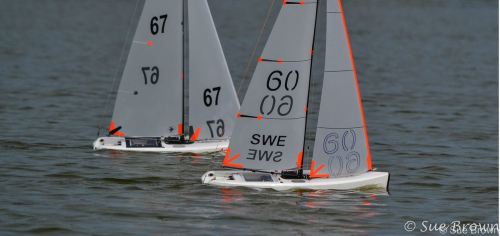 Lovely blue sky , lightish winds from the North 14 skippers, but hey Just a word of warning if you are up for OOD,, ensure the dingy is tied onto something before you go for a full lifeboat launch !!!! nuff said, the course on the south bank was perfect, a great beat and run round twice, and there was enough shifty stuff to catch you out, we welcomed Darin and Tracy as visitors ,and Darin showed us all how it should be done with a superb show of sailing/racing his 20 year old Widget, his worst result was a fourth, (and I noticed he was eating a sandwich,) just joking but it showed us all we have a way to go. A variety of designs on show here and the racing was really good and competetive up and down the fleet, Pete W showed some good form and Adrian C is now getting the hang of the Sedici , despite a bit of a dodgy looking bend in the mast. The Two lady skippers were seperated by 1 point, and had some great races, Chris G was wearing long trousers today but his head was still in Mexico. Disapointing show from Mick Cooper today, and I am sure we will all study the score sheet and hold our hands up to some errors in tactics and maybe trim and correct before round 6 .