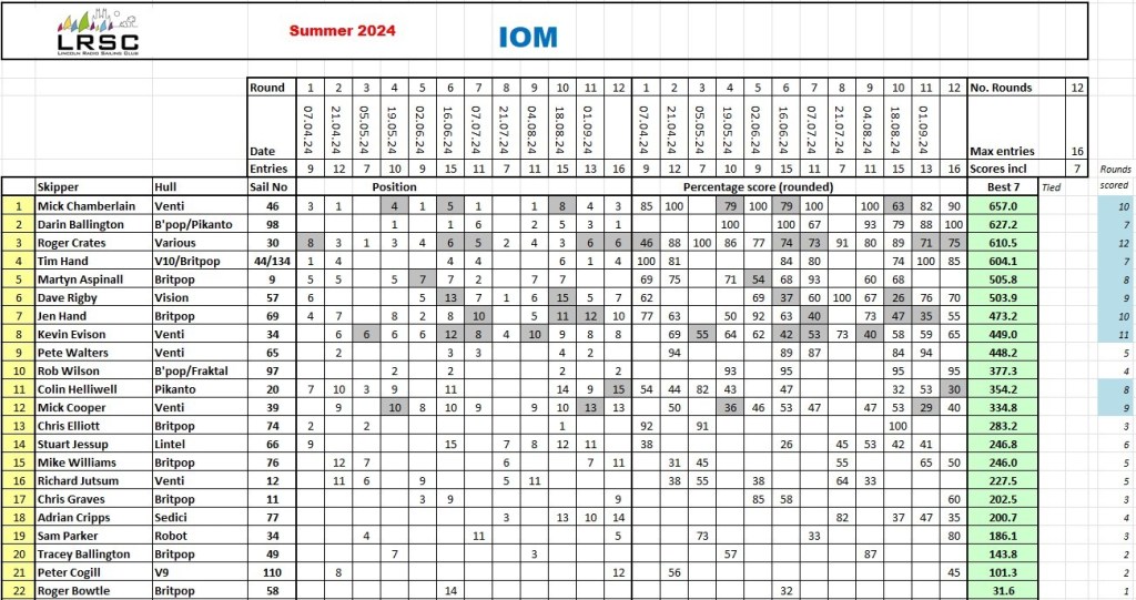 Finally we have a winner in this hotly contested series, Obviously the most popular and well supported of our classes, and with several designs on show, Mick C 46 the winner missed only two of the 12 races and it does suggest in order to win this fabulous shield you do need to be in it to win it.