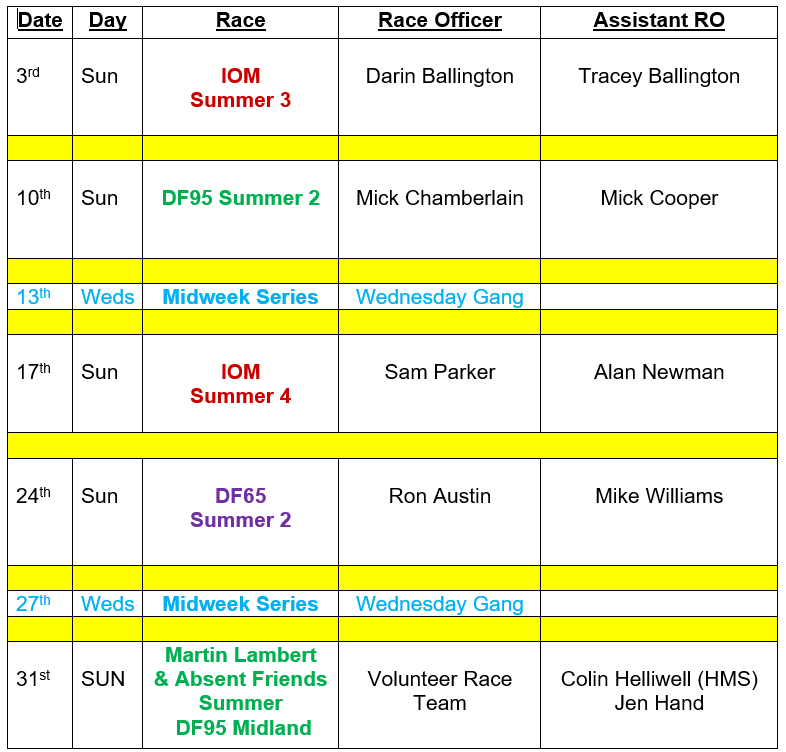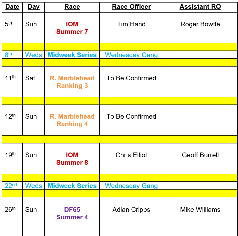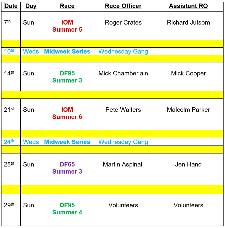 Do not be daunted that you are on the list to do duty officer, always ask your mates for help to get stuff out and ready, If you need to ask advice regarding setting the course JUST ASK !!! Before the last race of the morning call all skippers not to run off home, but give 5 minutes to help to put stuff away.